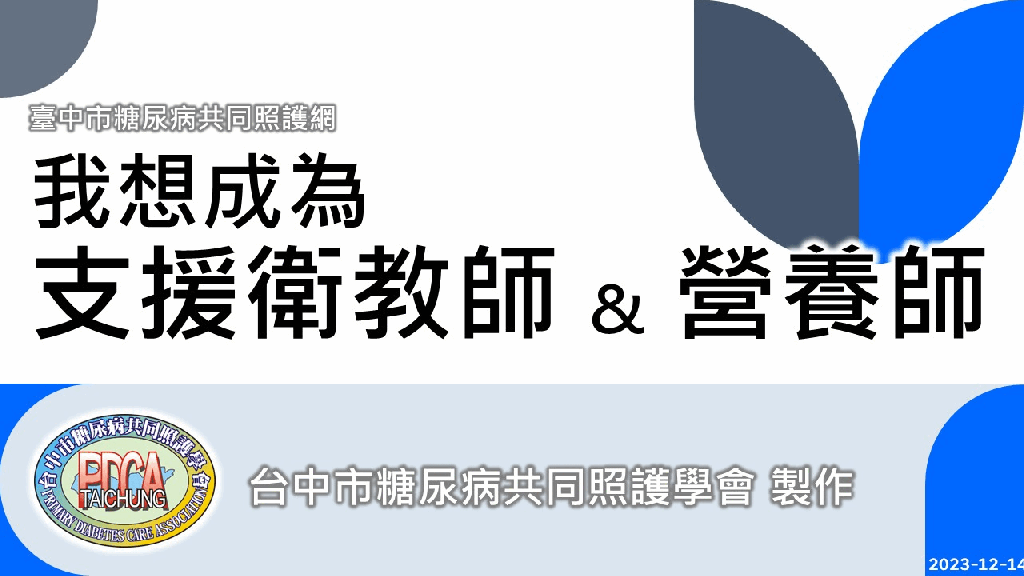 如何成為支援人力 重新播放請點我 台中市糖尿病共同照護學會製作 分享此文: 按一下即可分享至 X(在新視窗中開啟) X 按一下以分享至 Facebook(在新視窗中開啟) Facebook 喜歡 正在載入...