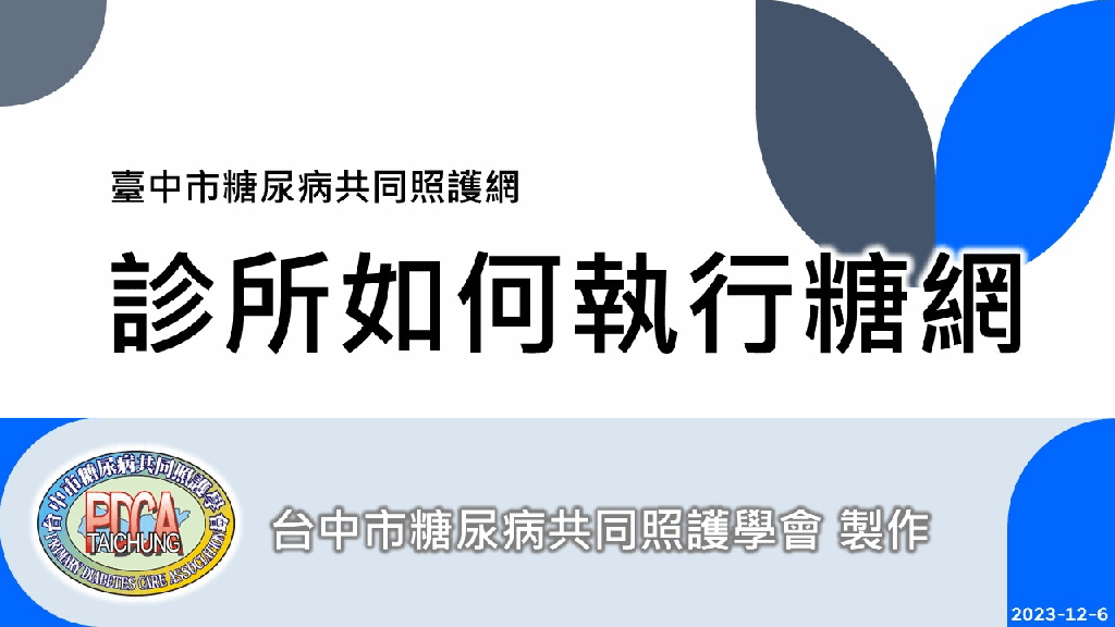 診所如何執行糖網 重新播放請點我 台中市糖尿病共同照護學會製作 分享此文: 按一下即可分享至 X(在新視窗中開啟) X 按一下以分享至 Facebook(在新視窗中開啟) Facebook 喜歡 正在載入...