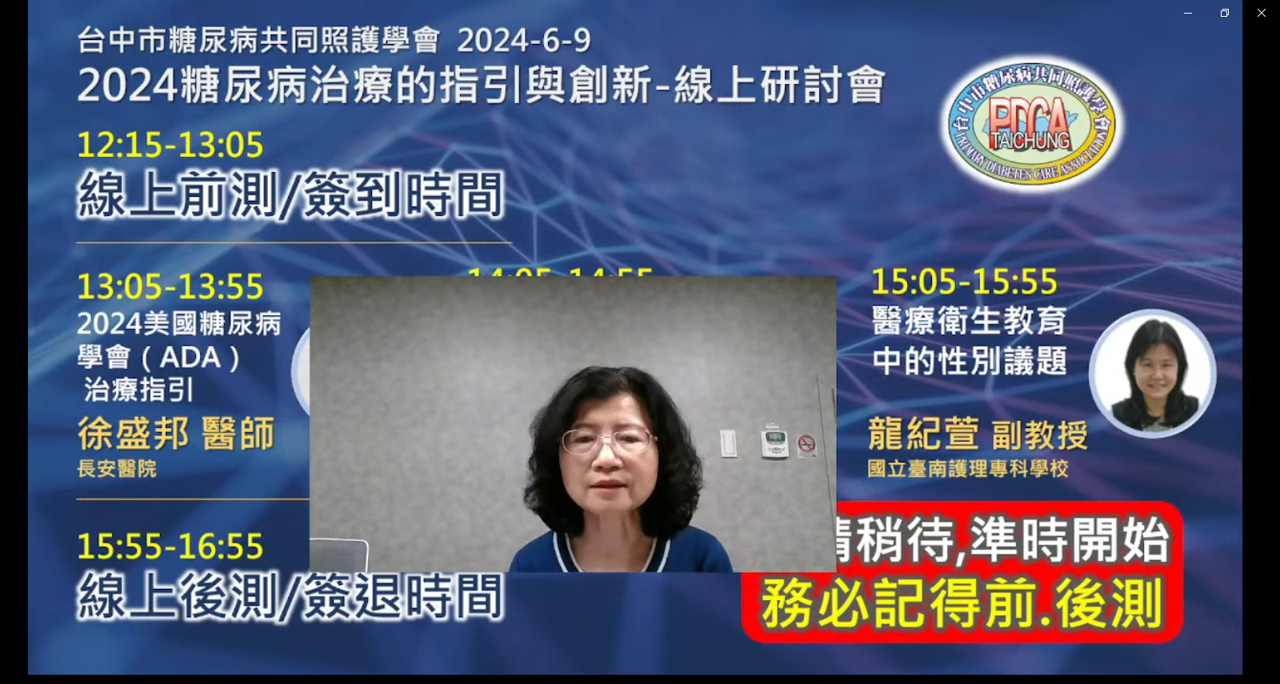 113/6/9 2024糖尿病治療的指引與創新-線上研討會 分類:糖尿病共同照護學會2024-06-11發表於活動剪影 上課時間:113年6月9日(星期日)13:05~15:55 主辦單位:台中市糖尿病共同照護學會 報名人數:216人 分享此文: 按一下即可分享至 X(在新視窗中開啟) X 按一下以分享至 Facebook(在新視窗中開啟) Facebook 喜歡 正在載入... 相關 發表者:糖尿病共同照護學會 本會為依法設立,非以營利為目的之社會團體,以從事糖尿病共同照護之推動,並促進糖尿病人之持續照護,強化國民之健康為宗旨 檢視更多文章